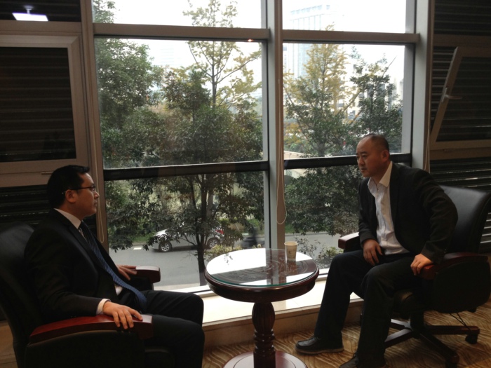 2012年11月22日,青海省产权交易市场总经理商桂林一行参观考察了天府商品交易所,与该所副总裁杨波就大宗商品交易等合作事宜进行了深入的交流。