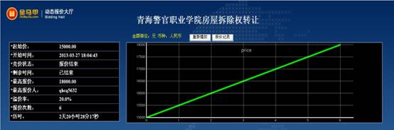 我市场闲置部专业团队对公物仓委托的每宗资产都认真负责,在接受委托后,为了充分发掘资产的潜在价值,使该资产在转让过程中能够实现价值最大化。市场闲置部门成立了专业的项目组人员前往现场对拆迁大楼进行核实、拍照,市场工作人员根据西宁拆除项目的普遍价位,将项目资料图文并茂的发布到市场网站进行宣传,在公告发布短短5天的时间内共征集到意向受让人15家以上,来电或现场咨询60多人次,市场工作人员主动放弃节假日休息时间带领意向受让人前往现场带看。经过市场审核确认,最终筛选出10家符合条件的意向受让人参加此次拆迁项目的网络竞价。2013年3月30日上午该项目网络竞价正式开始,在短短2小时28分17秒时间里,以委托价15000元起,经过多轮激烈的竞价,最终以18000元成交,增值3000元,增值率达20%。