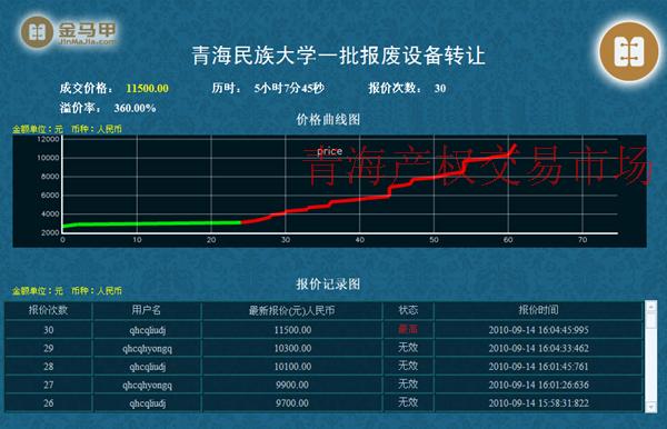 青海民族大学报废资产网络竞价成功——评估价2500元 成交价11500元 增值9000元 增值率达3