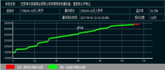 市场利用覆盖全省、面向全国的网络交易平台,广泛征集意向受让人,通过全国产权交易机构电子网络竞价联盟平台(金马甲)进行网络拍卖,经过前期精心准备与策划,吸引了全国各地意向者报名参加,参与竞价企业多达14家,在网络竞价期间,公告页面点击率达到4732次(http://www.qhcqjy.com),报价统计达116次。