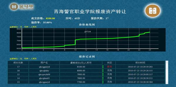 青海警官职业学院报废资产网络竞价曲线图及报价记录