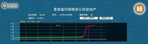 112,我市场通过资产与权益交易信息汇集的最大平台“金马甲”网络竞价系统,成功处置青海省印刷物资公司微波巷的房屋和土地,实现了国有资产处置效益的最大化。