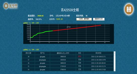 本次活动共接到咨询电话1380个,竞价网站日点击量高达5000余次,报名人数545人,经审核有效报名数为228人。经过三天的网络竞价,总评估价57.64万元的60台车辆,最终,以174.99万元成交,实现增值 117.35万元,增值率高达203.58%。其中,36号车以0.5万元的评估价起拍,最终以3.4万元成交,增值率高达580%,成为本次网络竞价中增值率最高标的。