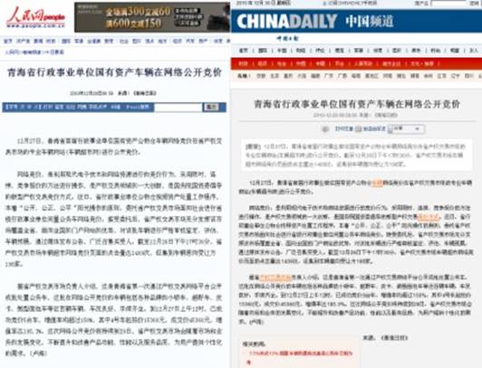 《人民网》、《中国日报》对此次公务车网络竞价的报道