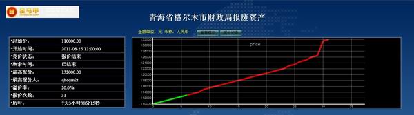 受格尔木财政局委托,青海省产权交易市场于2011年8月25日,对格尔木财政局一批报废资产(项目编号GC11QH030030)实行公开网络竞价处置。