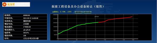 此次活动共有17位竞买人参加网络竞价,起拍价为60000.00元,经过158次报价,最终以279000.00元成交,项目增值率365%。