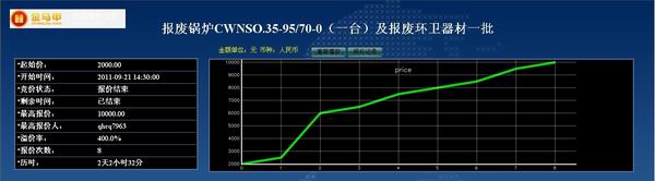 此次活动共有12位竞买人参加网络竞价,起拍价为2000.00元,经过8次报价,最终以10000.00元成交,项目增值率400%。