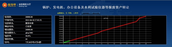 此次活动共有19位竞买人参加网络竞价,起拍价为20000.00元整,经过26次报价,最终以26000.00元整成交,项目增值率达30.0%