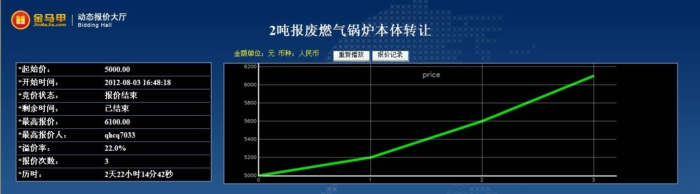 此次活动共有2位竞买人参加网络竞价,起拍价为5000.00元整,经过3次报价,最终以6100.00元整成交,项目增值率达22.0%。