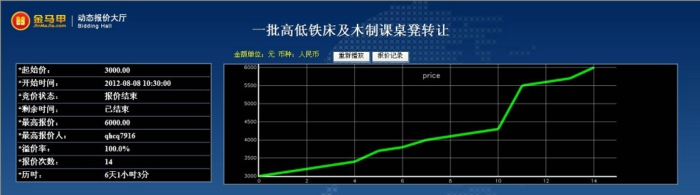 此次活动共有7位竞买人参加网络竞价,起拍价为3000.00元整,经过14次报价,最终以6000.00元整成交,项目增值率达100.0%。