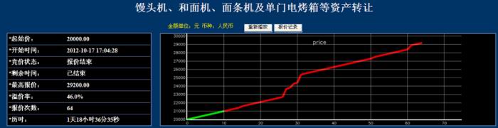 此次活动共有9位竞买人参加网络竞价,起拍价为20000.00元整,经过64次报价,最终以29200.00元整成交,项目增值率达46.0%。