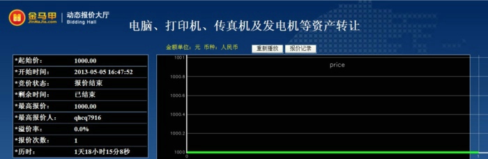 此次活动共有9位竞买人参加网络竞价,起拍价为1000.00元整,经过1次报价,最终以1000.00元整成交,项目增值率达0.00%。