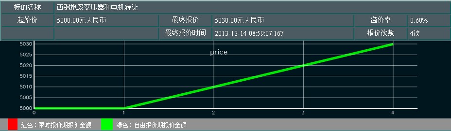 此次活动共有19位竞买人参加网络竞价,起拍价为5000.00元/吨整,经过4次报价,最终以5030.00元/吨整成交。