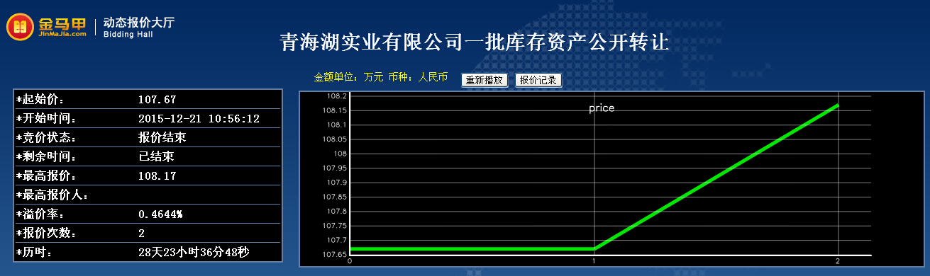 受青海湖实业有限公司委托,青海省产权交易市场于2015年12月21日对其所有的一批库存资产实行公开网络竞价处置。