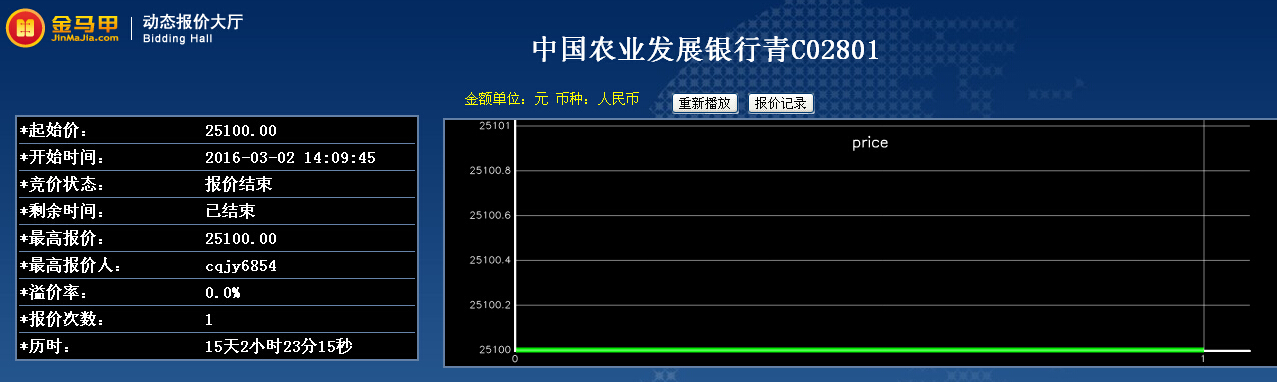 此次活动共有1位竞买人参加网络竞价,起拍价为2.51万元整,经过1次报价,最终以2.51万元整成交。
