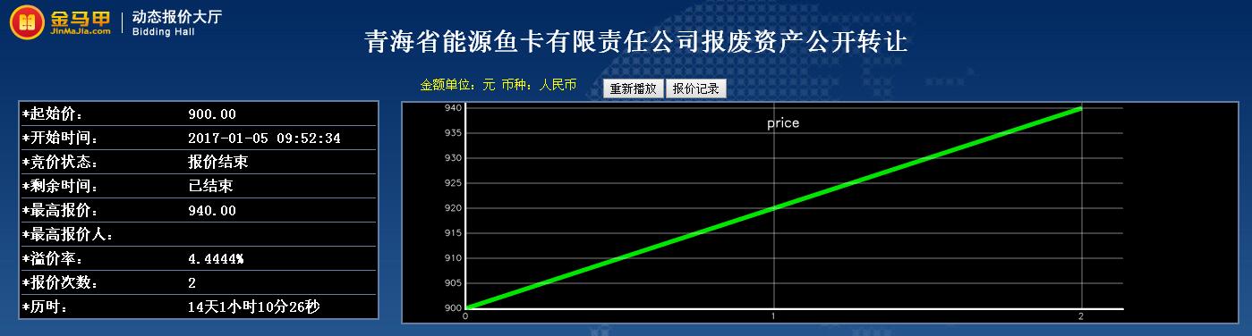 受青海省能源鱼卡有限责任公司委托,青海省产权交易市场于2017年1月5日对其持有的部分报废资产公开转让(项目编号GZ17QH030105)实行公开网络竞价处置。