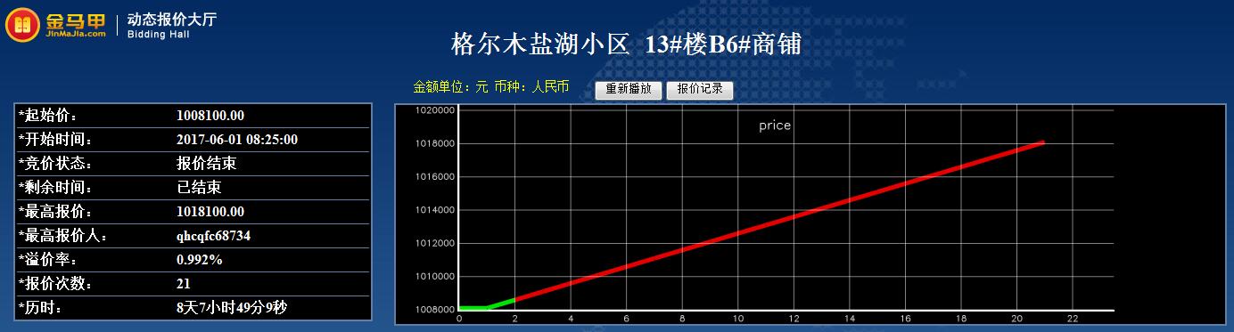 此次活动共有2位竞买人参加网络竞价,起拍价为1008100元,经过21次报价,最终以1018100元成交。