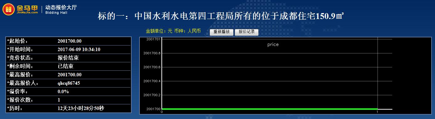中国水利水电第四工程局有限公司所有的位于成都住宅,建筑面积:150.9平方米(标的一)结果公示