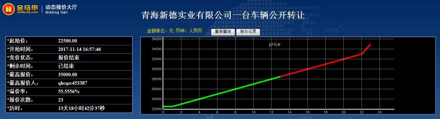 受青海新德实业有限公司委托,青海省产权交易市场于2017年11月14日对其持有的一台车辆(项目编号GZ17QH051110)实行公开网络竞价处置。