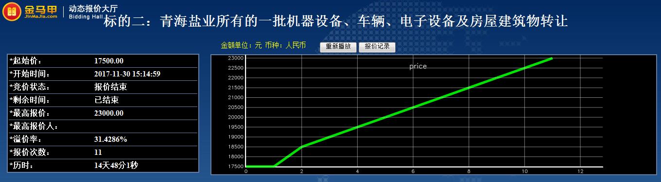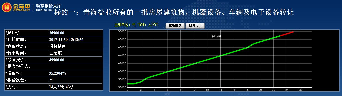 受青海省盐业股份有限公司委托,青海省产权交易市场于2017年11月30日对其持有的机器设备(项目编号GZ17QH041130 )实行公开网络竞价处置。