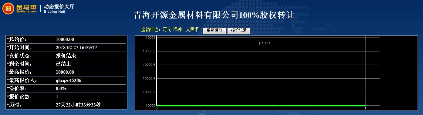 青海开源金属材料有限公司100%股权转让结果公示