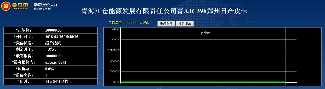 青海江仓能源发展有限责任公司青AJC396郑州日产皮卡 结果公示