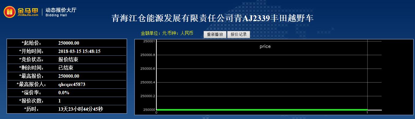受青海江仓能源发展责任公司委托,青海省产权交易市场于2018年3月15日对其所有的青AJ2339(项目编号GZ18QH050315)实行公开网络竞价处置。