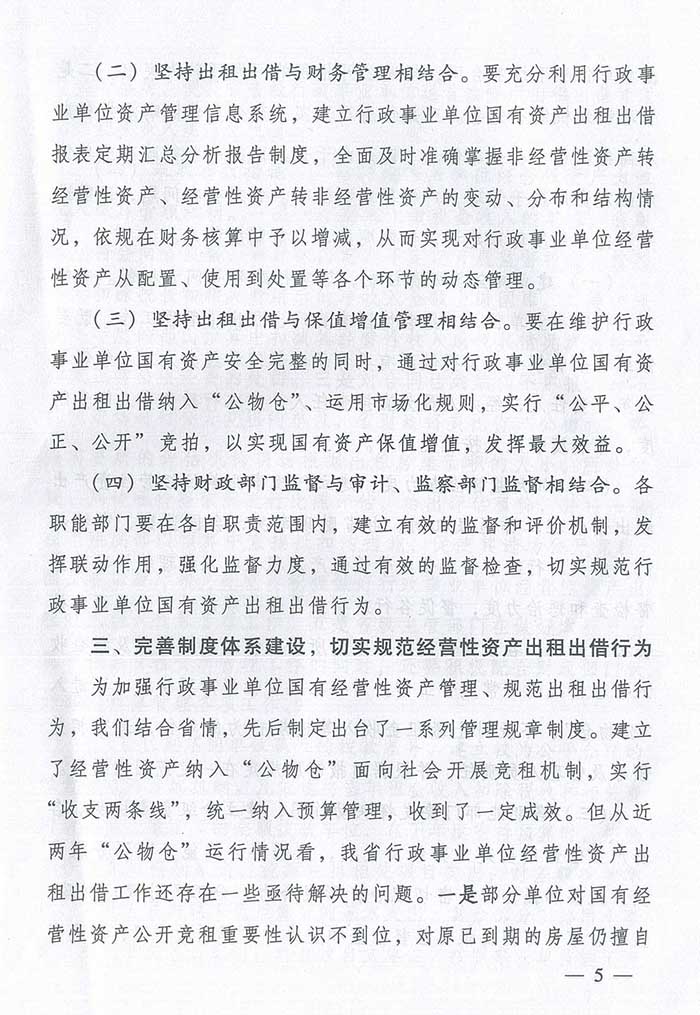 《进一步加强省级行政事业单位经营资产出租出借管理工作的意见》的通知