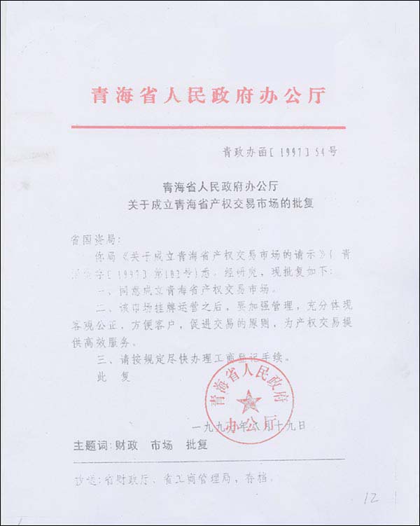 履行青海省人民政府、青海省政府国有资产监督管理委员会批准的企业国有产权转让交易职能。
