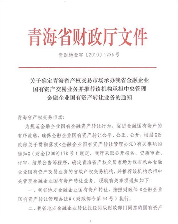 履行青海省财政厅确定的金融国有资产转让交易职能