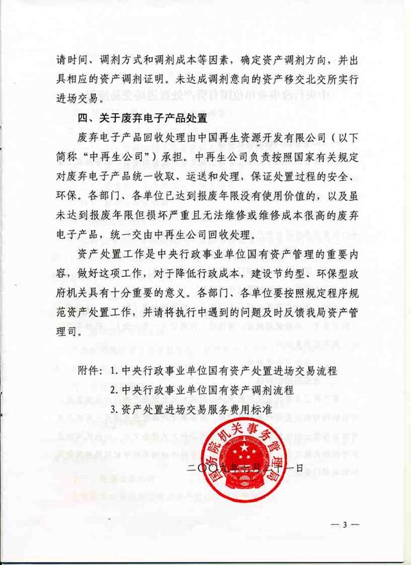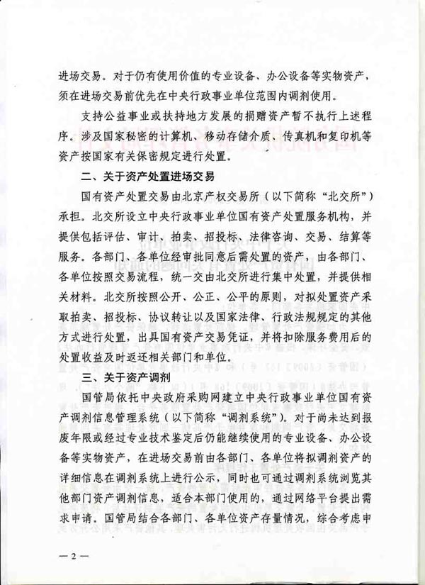 关于中央行政事业单位国有资产处置有关问题的通知(国管资[2009]246号)