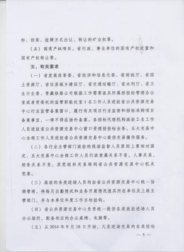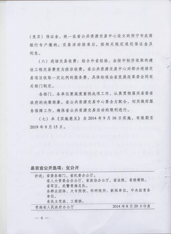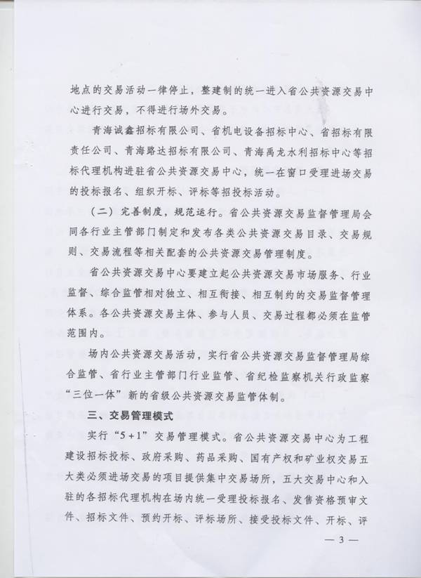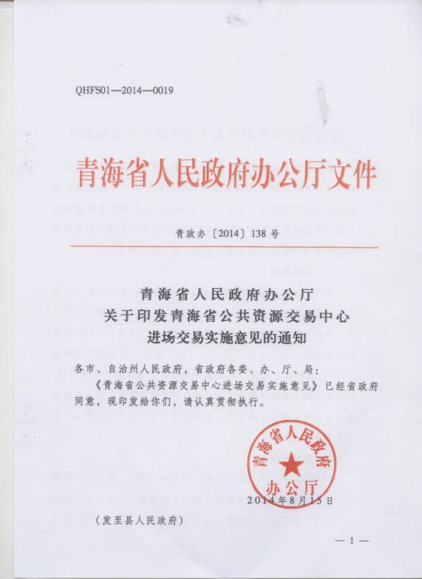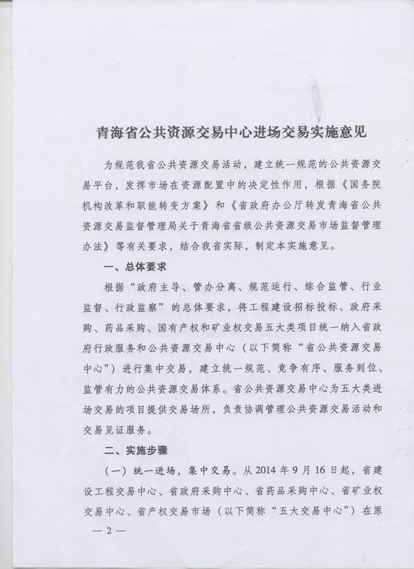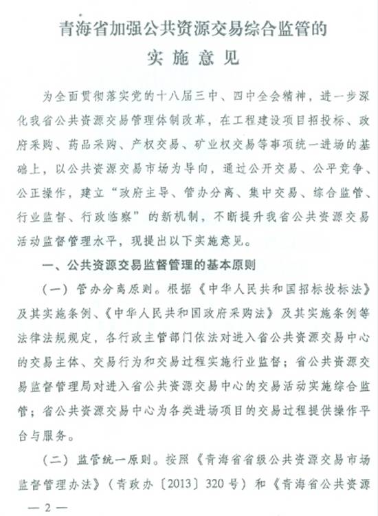 《关于青海省加强公共资源交易综合监管的实施意见》(青政办[2015]62号)