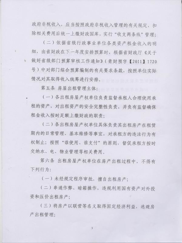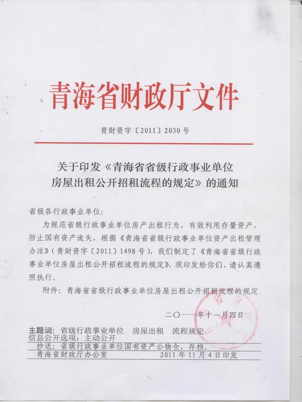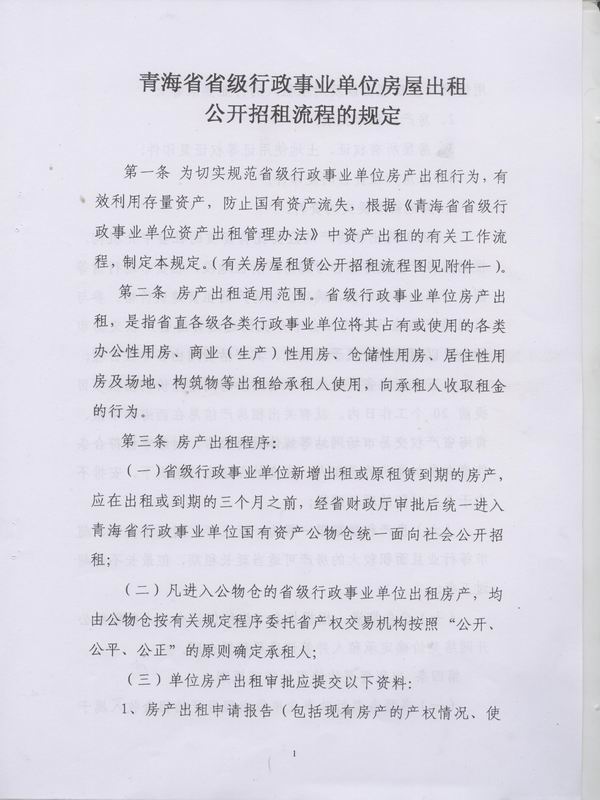 关于印发《青海省省级行政事业单位房屋出租公开招租流程的规定》的通知