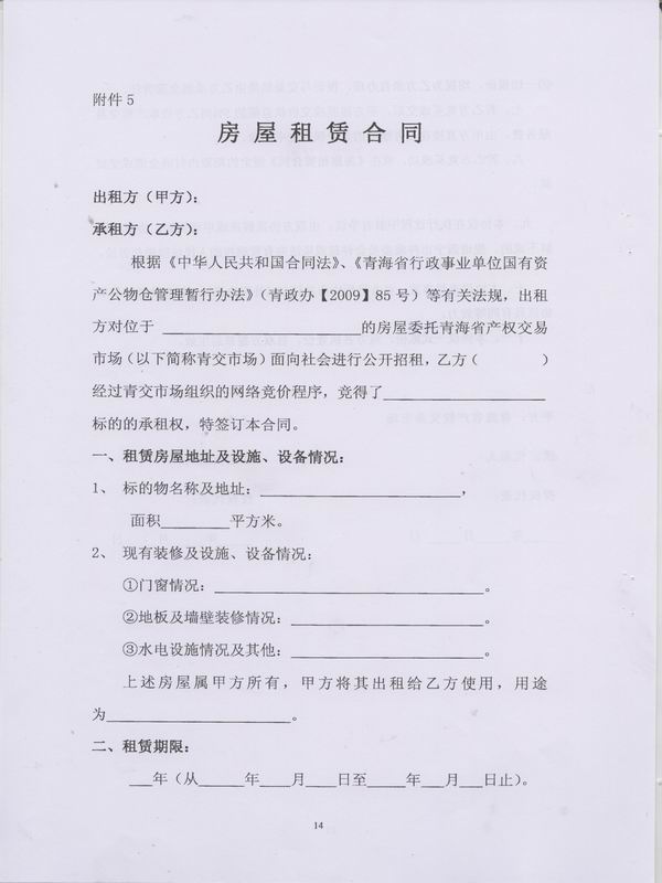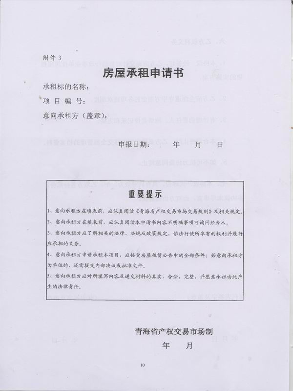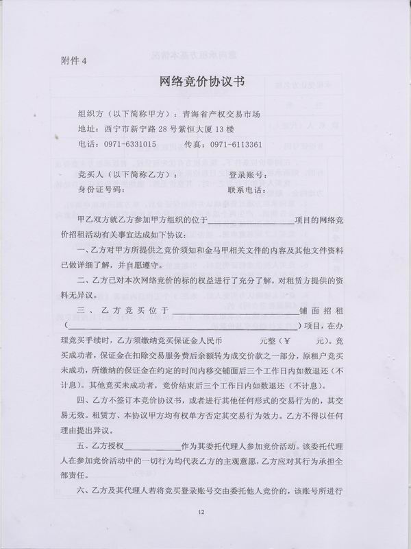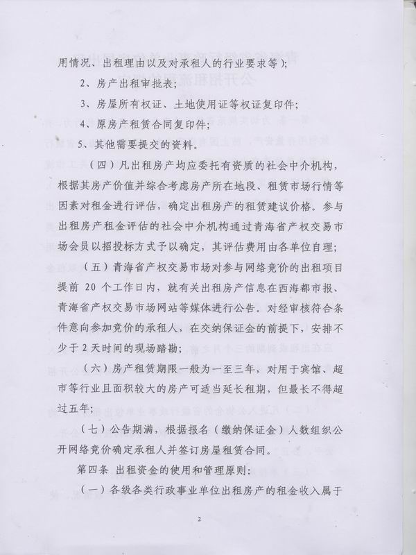 (五)青海省产权交易市场对参与网络竞价的出租项目提前20个工作日内,就有关出租房产信息在西海都市报、青海省产权交易市场网站等媒体进行公告。对经审核符合条件意向参加竞价的承租人,在交纳保证金的前提下,安排不少于2天时间的现场踏勘。