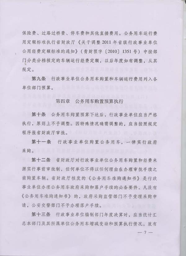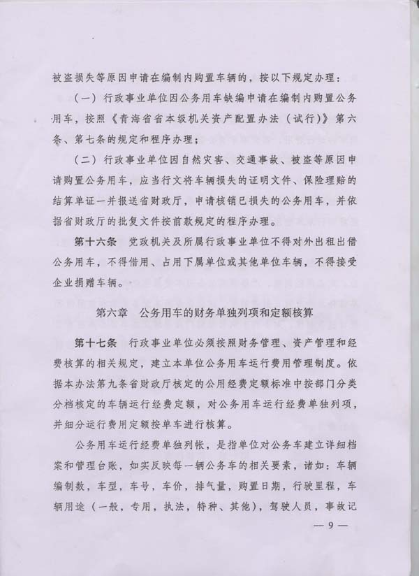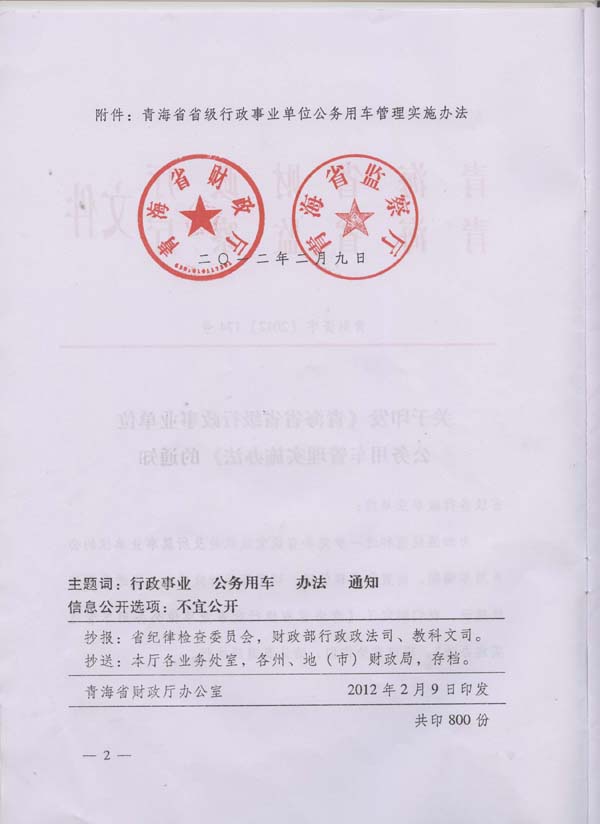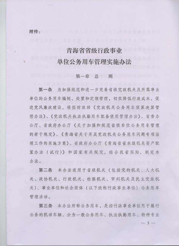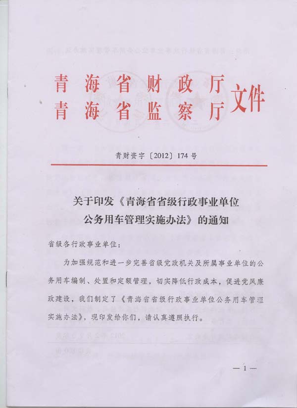 关于印发《青海省省级行政事业单位公务用车管理实施办法》的通知