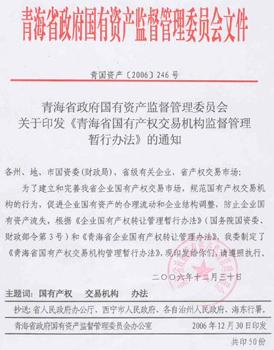《青海省国有产权交易机构监督管理暂行办法》(青国资产 [2006]246号)