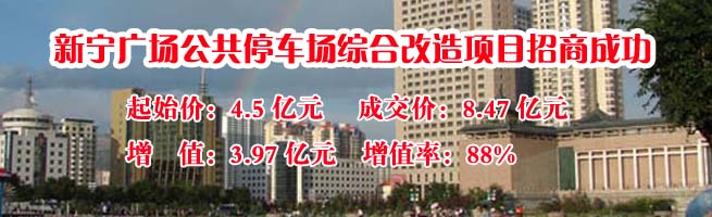 青海省产权交易市场受西宁城通交通建设投资有限公司委托,对“新宁广场公共停车场综合改造项目”进行了公开招商,经过缜密的分析策划、严格地按照国家相关法律、法规和“公开、公平、公正”的原则进行市场化操作,该项目于2011年1月6日发布《招商公告》,1月26日进行了封闭式评审,1月27日、28日组织两次谈判后,于1月31日发布评审结果,2月11日发放《中选通知书》,选定青海明瑞房地产开发公司为该项目最终投资人。