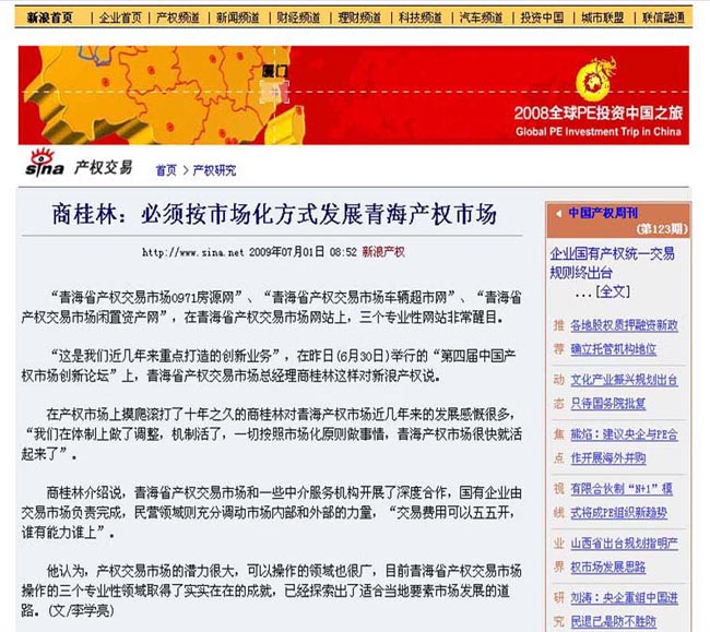 新浪网:必须按市场化方式发展青海产权市场(商桂林)