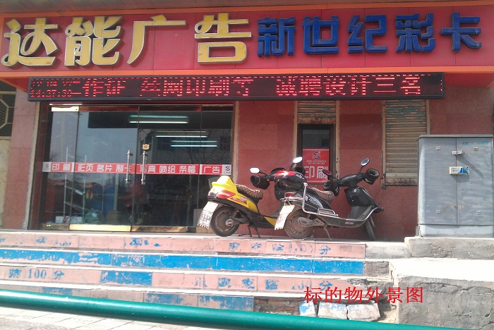1号标的物位于城中区长江路136号,管理站收费站临街商铺,面积70平米 水电暖(齐全)齐全,现经营项目为(达能广告)。