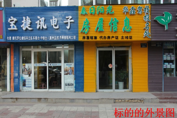 3号标的物位于西宁市城西区五四大街32号,面积55平米,基础设施齐全,现经营项目为(春日阳光房屋中介);东邻儿童公园、中心广场,南接城市快速路,气象巷农贸市场近在咫尺,为你购物提供便利;办公地聚集、银行营业网点众多,所有这些决定了该标的地段的稀缺性,成熟的社区环境决定了稳定而有品位的消费人群和消费能力。