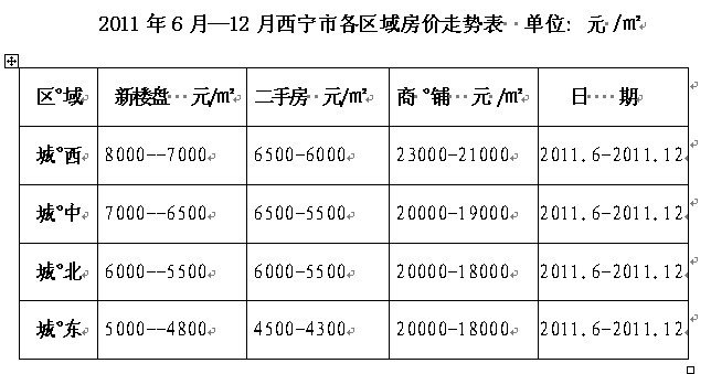 2、 西宁市2011年6月---2011年12月房价走势情况