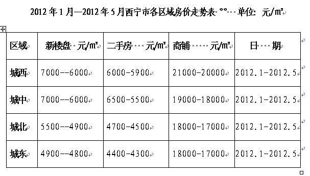 从上列数据明显可见,西宁市房地产交易价格呈微降趋势,未来市场走向不明朗。从去年的开发情况看,省城保持了较高的开发投资趋势,这预示着,今年下半年或许盘整期就会过去,新一轮的房地产投资与消费期会来到。同时,根据多年的情况,及我省特殊的地域、发展状况,市场过热情况也不会出现,会保持稳定持续的发展态势。目前由于市场供应以续建和尾盘为主,新项目年中才陆续推出,所以2012年西宁房地产市场仍处于调整阶段.