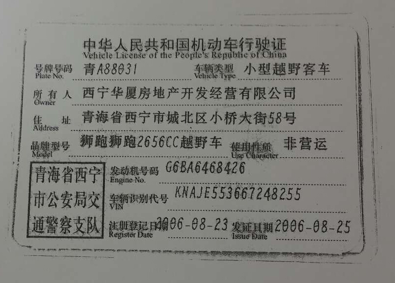 关于西宁房地产集团有限公司一台车辆公开处置公告