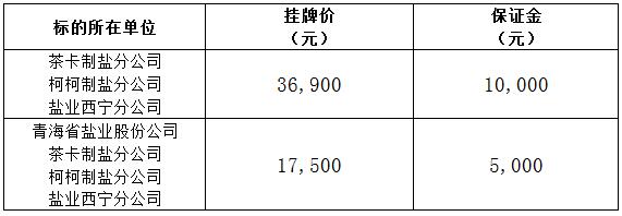 标的二:青海盐业所有的一批机器设备、车辆、电子设备及房屋建筑物转让,挂牌价17500元。