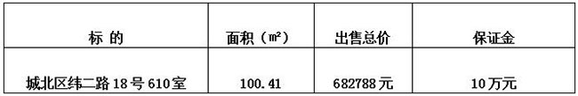 城北区纬二路18号610室(管委会)办公场所转让公告