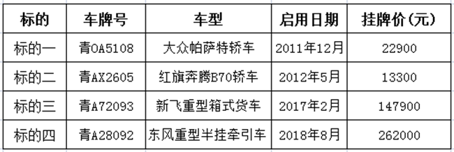 依据《中华人民共和国企业国有资产法》《企业国有资产交易监督管理办法》(国务院国资委、财政部第32号令)《青海省企业国有资产交易监督管理办法》(青国资产〔2017〕339号),受青海融鑫实业发展有限公司委托,青海省产权交易市场对该单位所拥有的4台车辆公开转让,挂牌总价446100元。