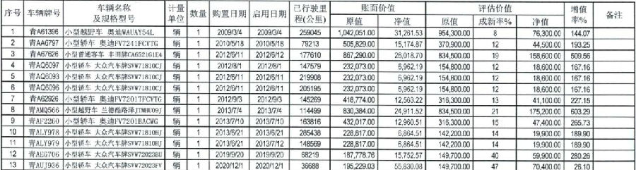 中国银行股份有限公司青海省分行所属拟进行资产处置所涉及的13辆车公开转让公告