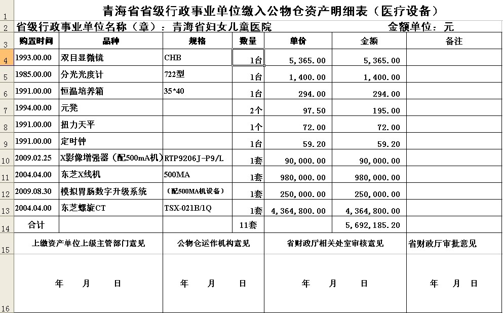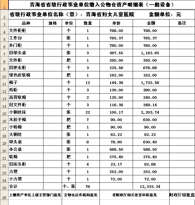 青海省省级行政事业单位公务仓资产