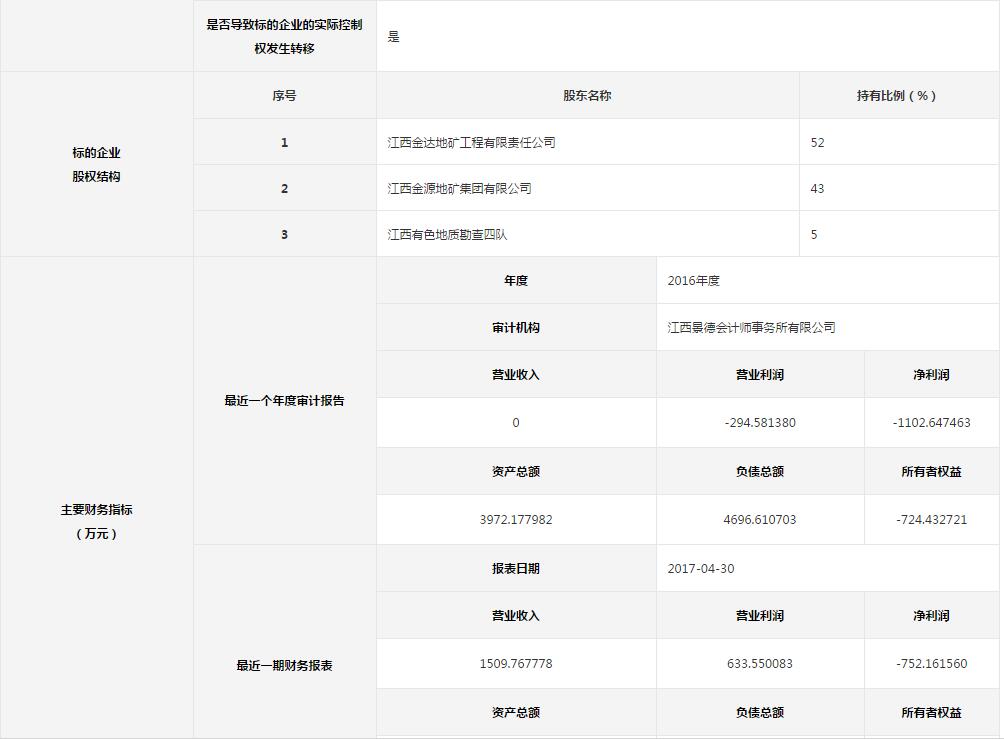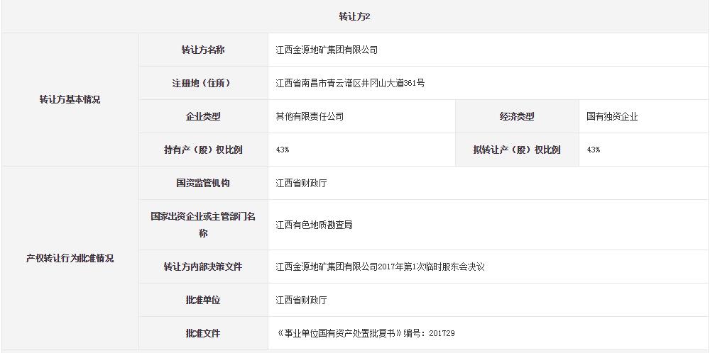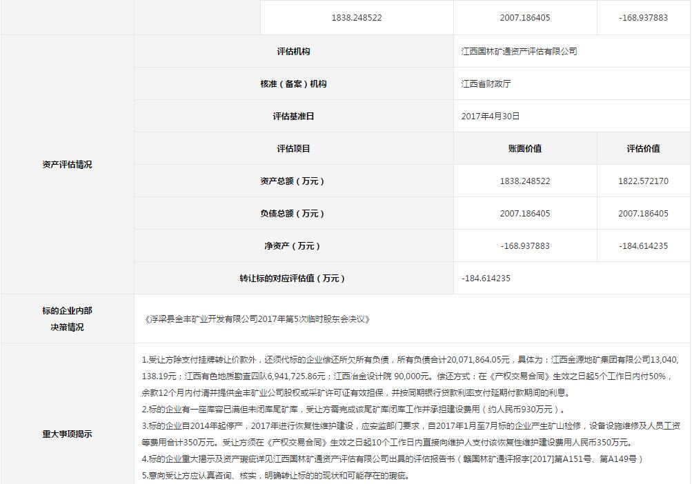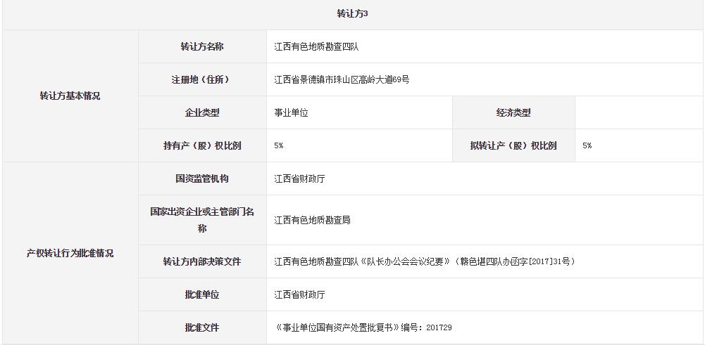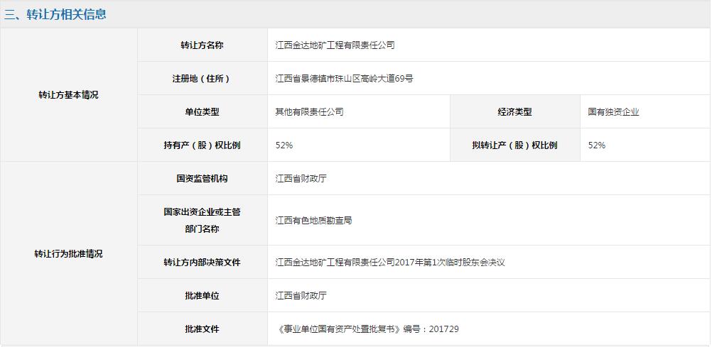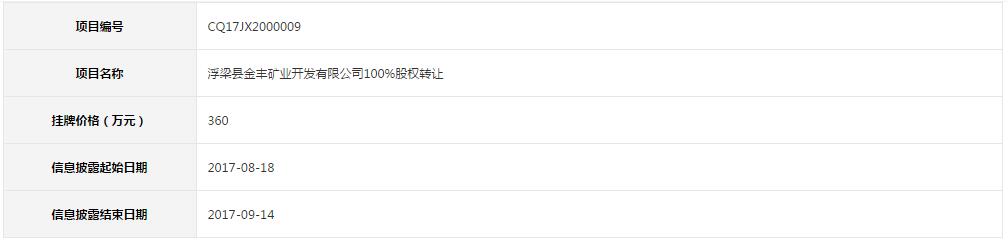 浮梁县金丰矿业开发有限公司100%股权转让信息披露公告