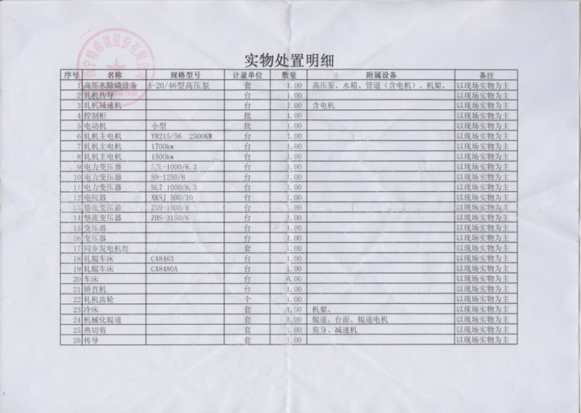 关于西宁特钢股份有限公司闲置二轧生产设备
